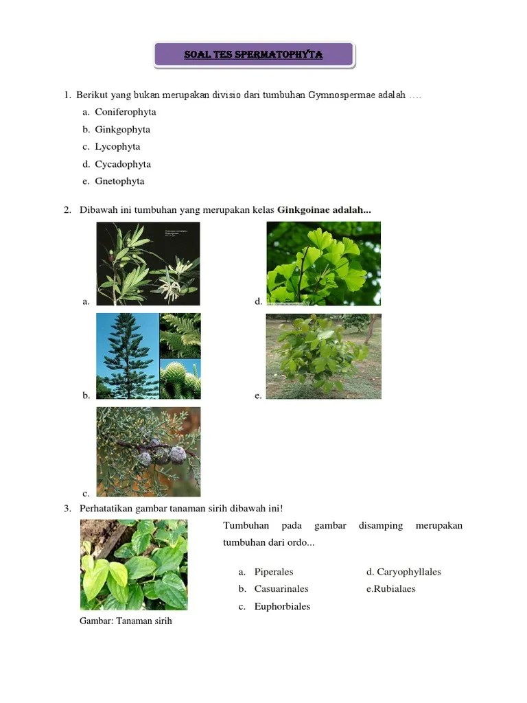 Soal pilihan ganda tentang spermatophyta. Check spelling or type a new query. We did not find results for: Maybe you would like to learn more about one of these?